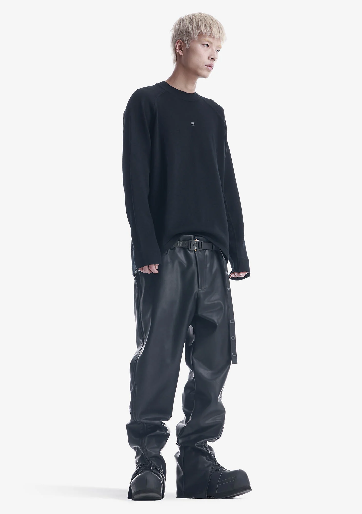 VINT pants made from matte eco-leather with breathable lamination. The material is non-reflective, shape-retaining, and moisture-resistant. A side zipper reveals a hidden pocket and also functions as ventilation. Loops for carabiners and convenient hand pockets provide functionality without adding bulk.