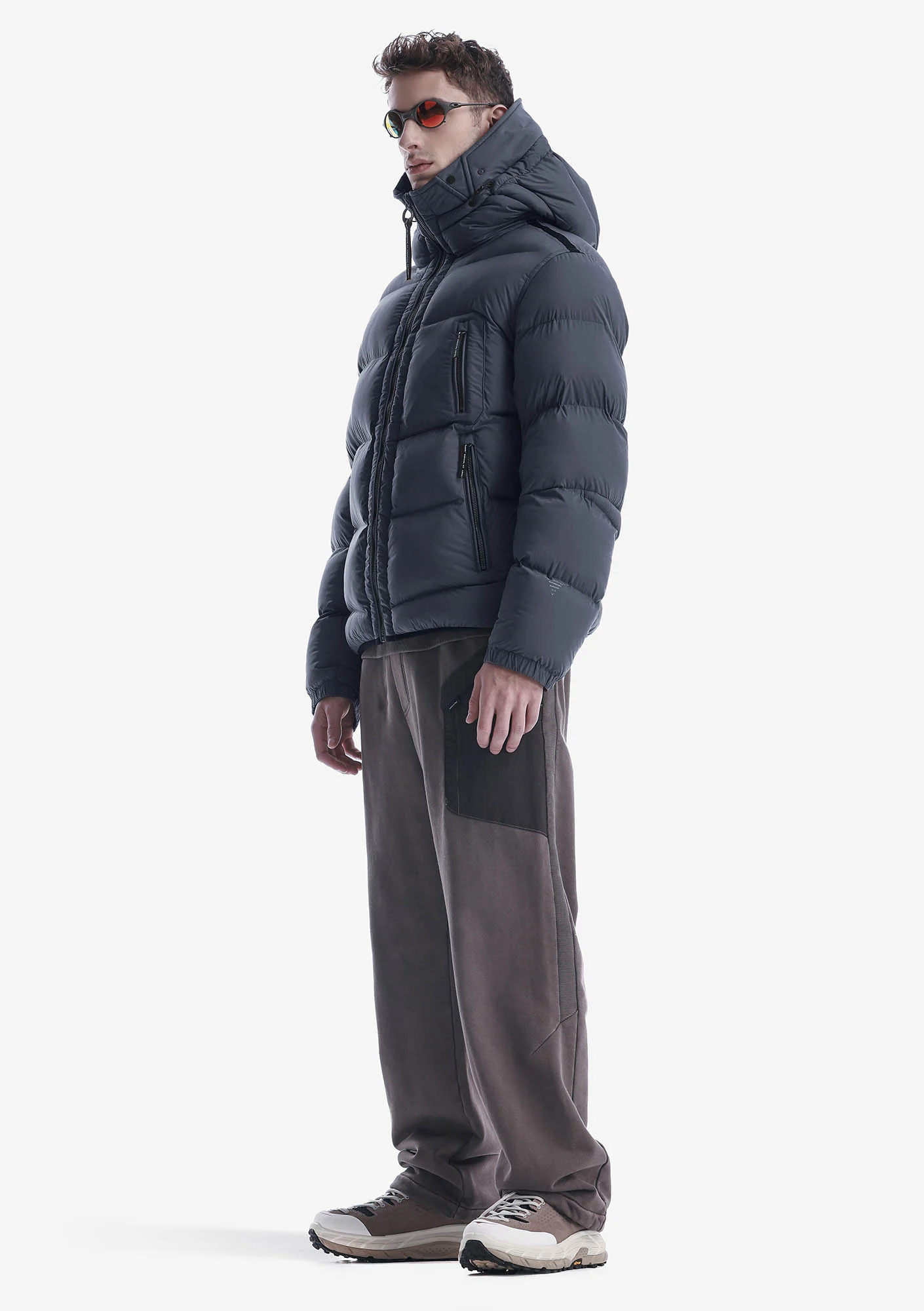 ROOK hooded puffer jacket is made from dense windproof fabric with a water-repellent finish. The down-equivalent insulation retains warmth, repels moisture, and quickly regains its shape. A deep hood with a wind-blocking collar, elastic cuffs and hem, zippered hand pockets, and an inner Velcro pocket provide wind protection, comfort, and practical storage.