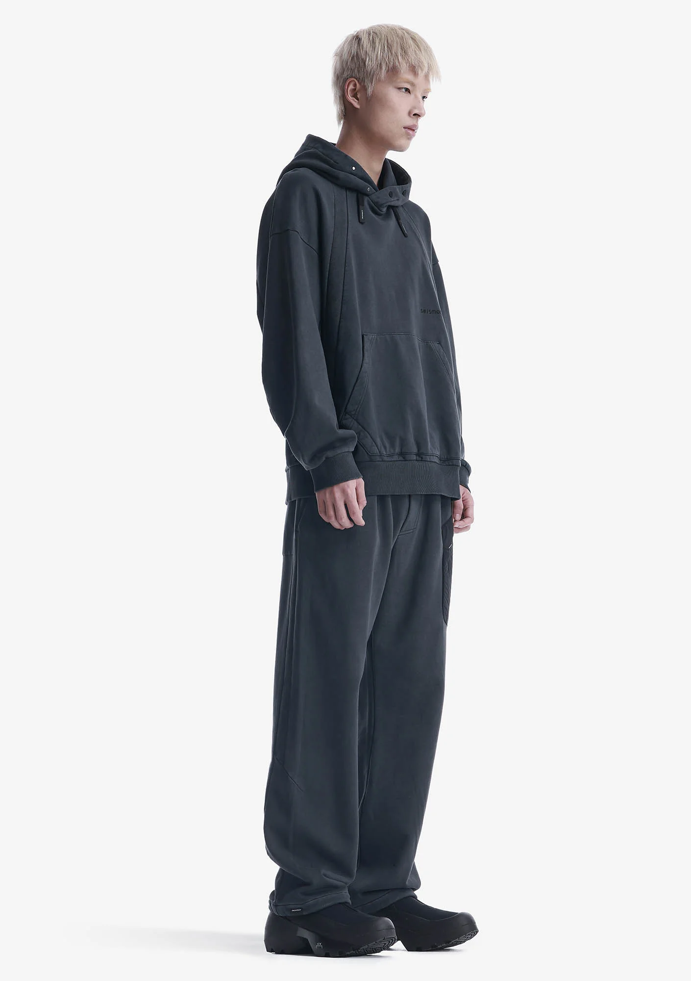 FRISSON hoodie is made from dense cotton knit with a looped back. It’s dyed after construction and treated with a snow wash—each shade is unique. The fabric won’t shrink and feels comfortable right away. Elastic inserts highlight the contours. The double-layered hood with a high collar and snap-button closure provides wind protection without extra layers.