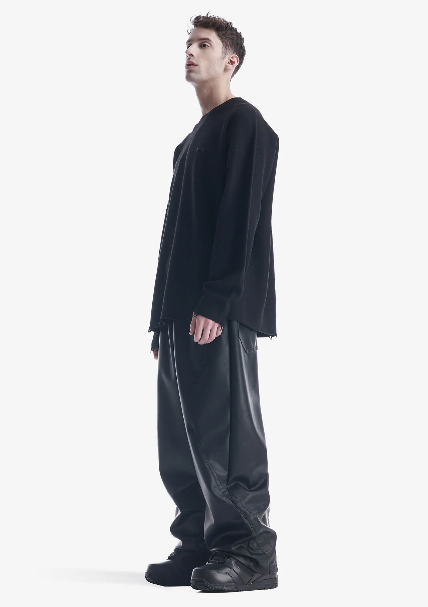 WHALDOZE sweater is made from pure wool with a felted texture. The material is boiled-treated — dense, warm, and soft with a felt-like finish. Featuring a relaxed fit, dropped shoulders, and raw edges, it creates volume and a handcrafted feel.